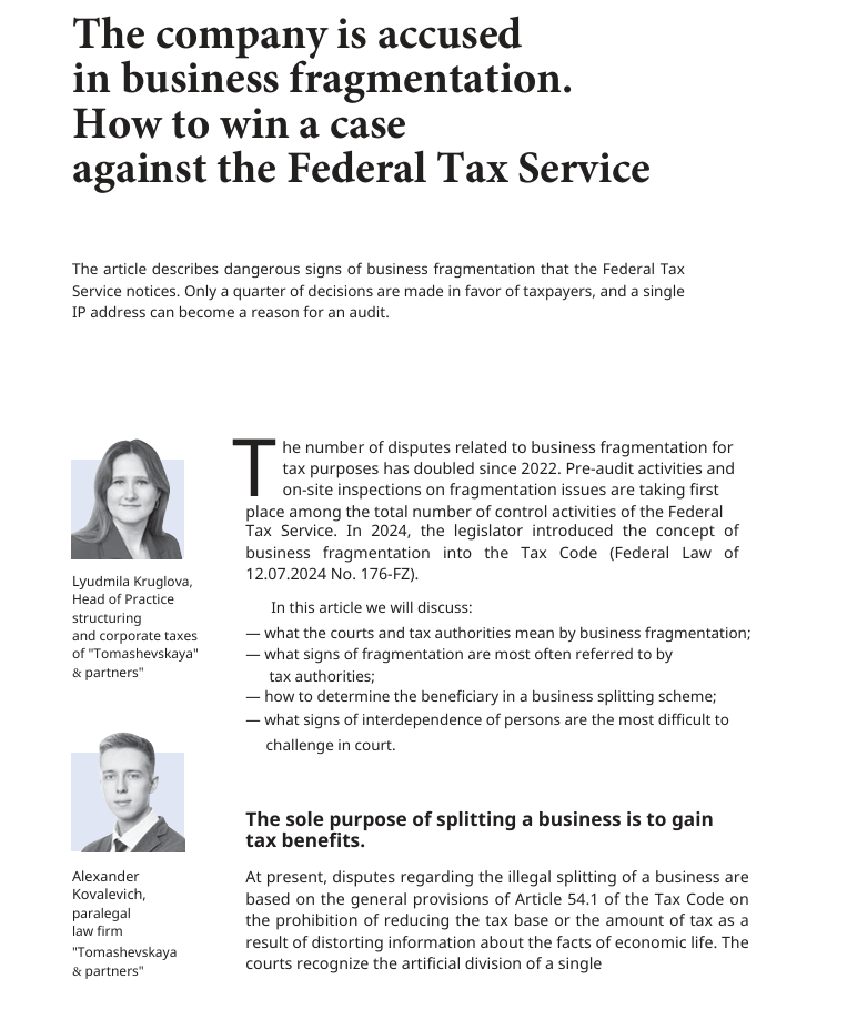 Dangerous signs of business fragmentation that the Federal Tax Service notices. Only a quarter of decisions are made in favor of taxpayers, and a single IP address can become a reason for an audit.